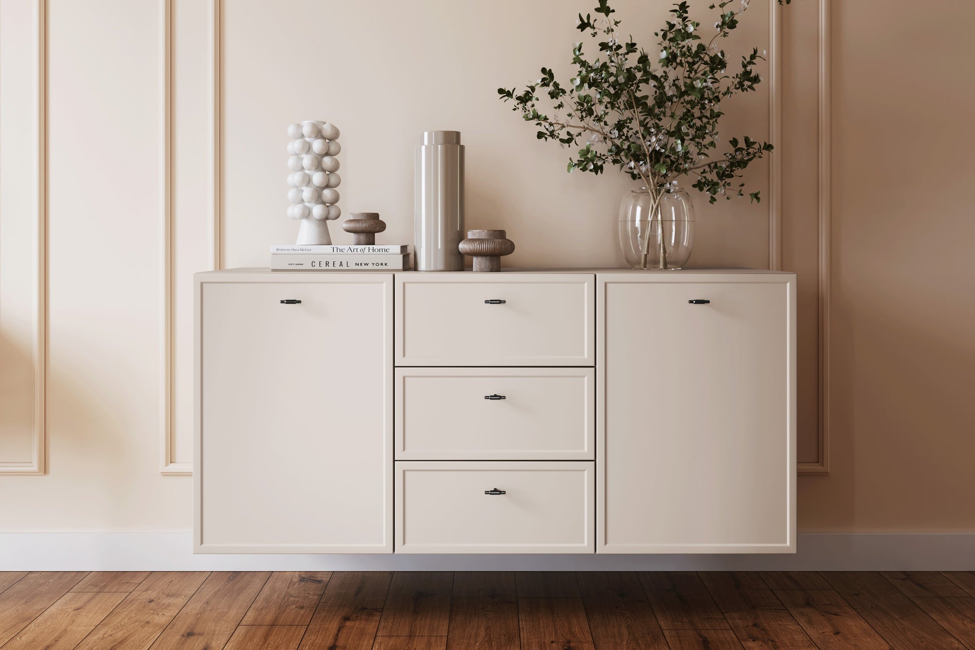 Lorini Hangende Ladekast 150 cm - Kasjmier / Zwarte T-bar Handgrepen