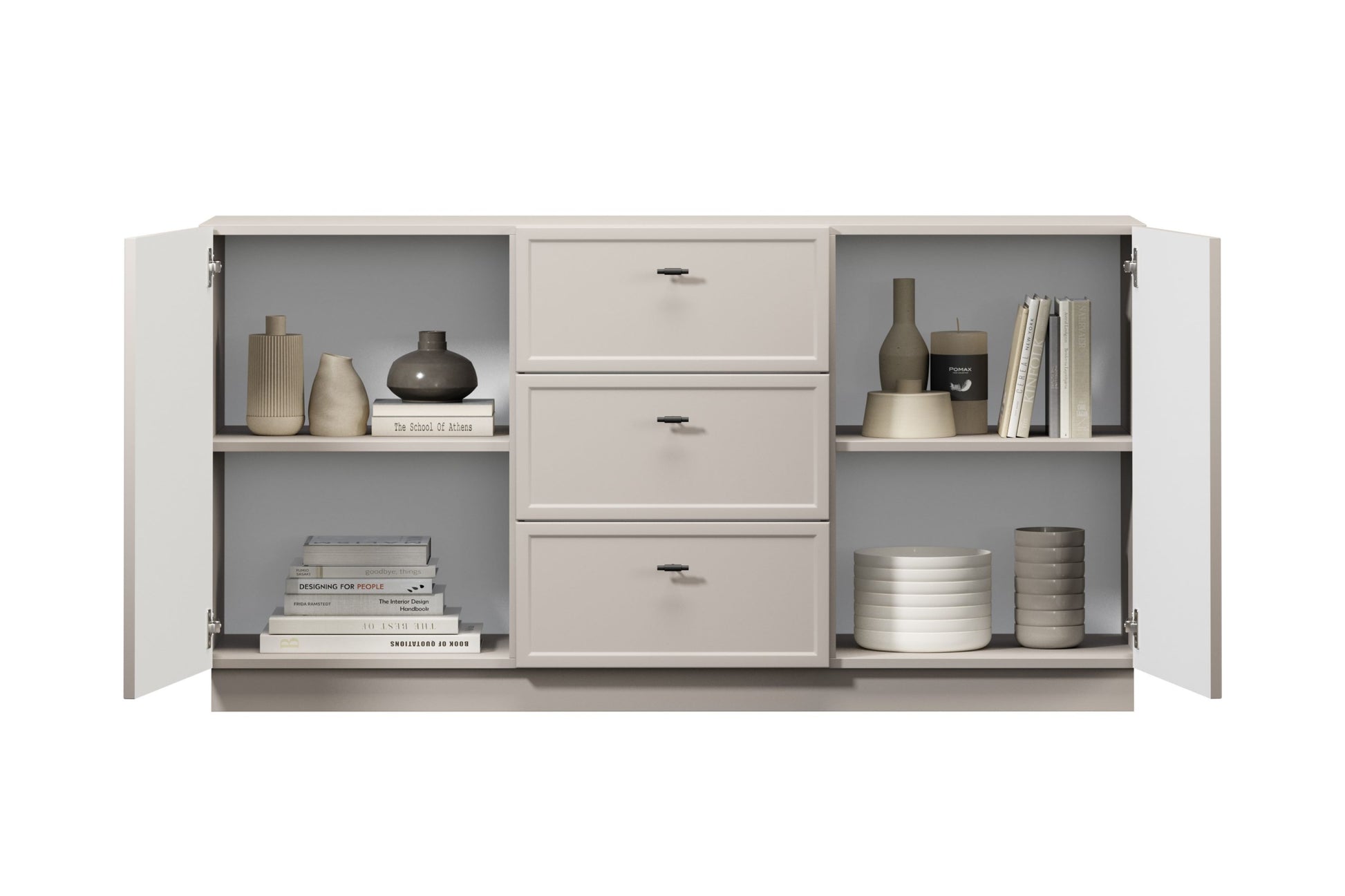 Lorini ladekast 150 cm met 3 lades & 2 planken - Kasjmier | Kleur: Kasjmier/Zwart | Maat: 150x77x45