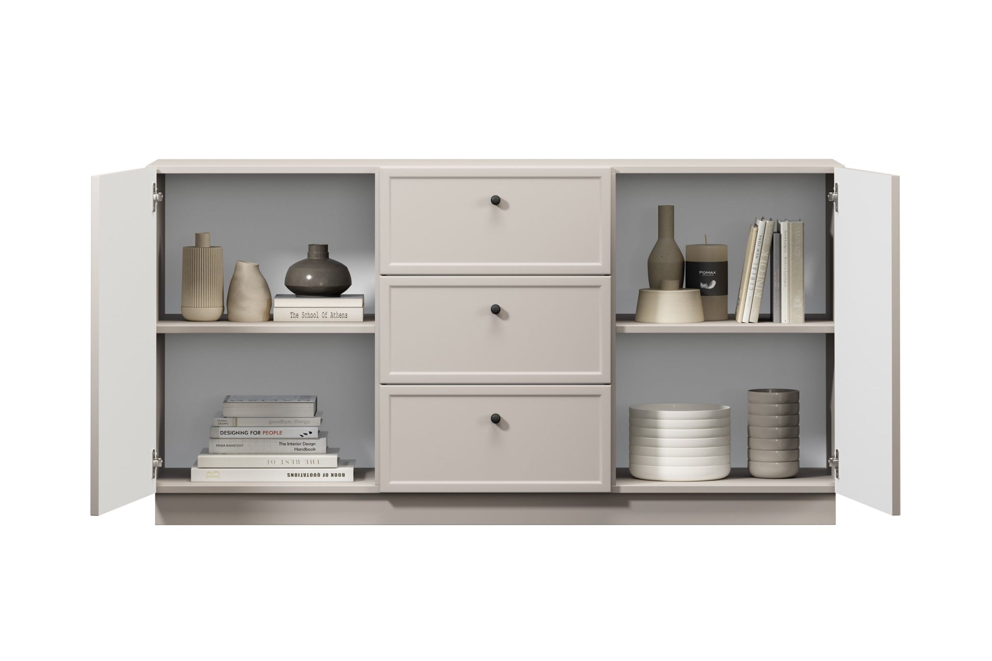Lorini ladekast met 3 lades en 2 deuren – Duurzaam design | Kleur: Kasjmier / Zwart