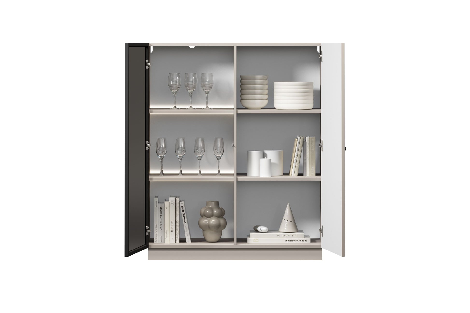 Lorini vitrinekast 100 cm - LED-verlichting, soft close, 4 verstelbare planken | Kasjmier/Zwart