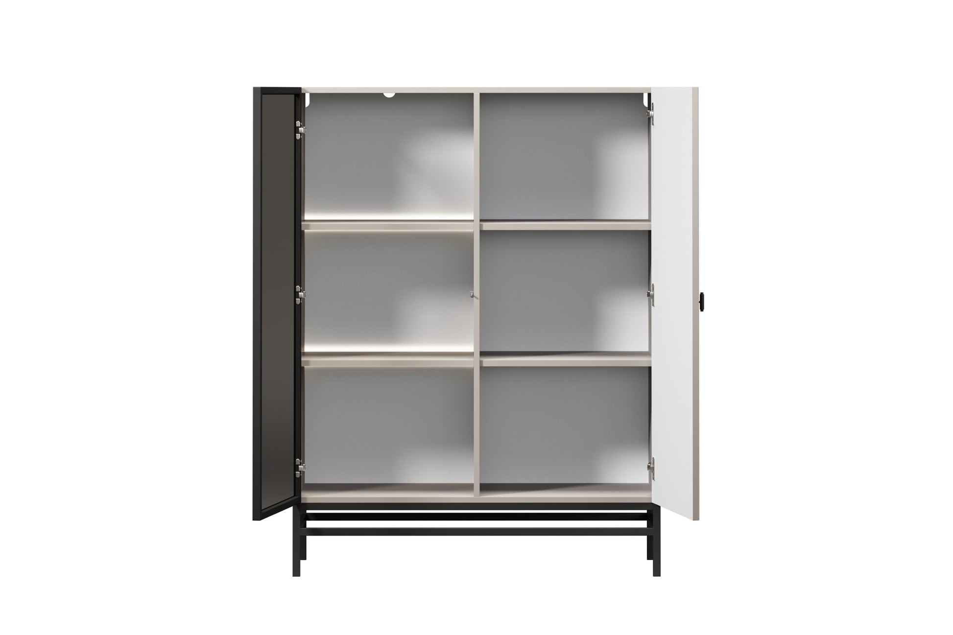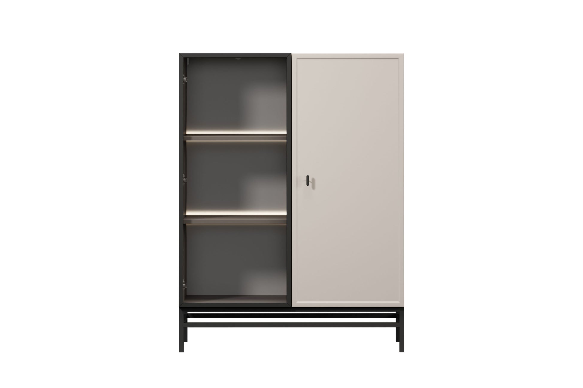 Lorini Vitrinekast 100 cm Kasjmier/Zwart – Met Modern T-bar Handvat en LED-verlichting