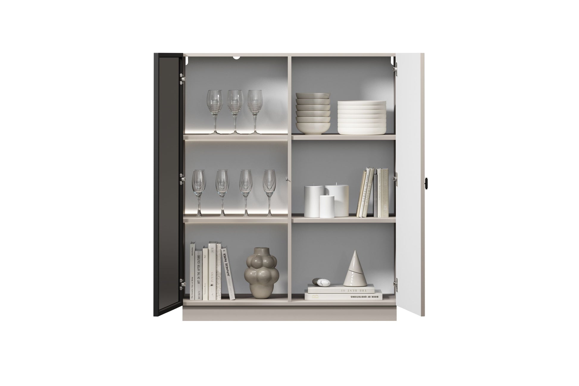 Lorini vitrinekast 100 cm - Verstelbare planken, LED-verlichting | Kleur: Kasjmier/Zwart