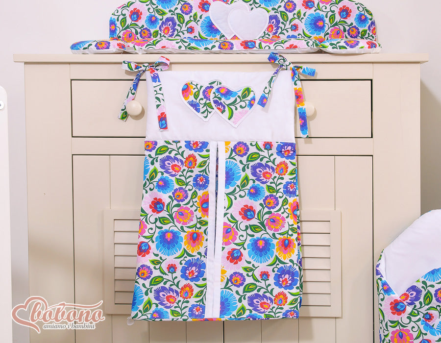 Blöjväska - blöjväska - 100% bomull, lätt att hänga, blommönster, Hängande hjärtan