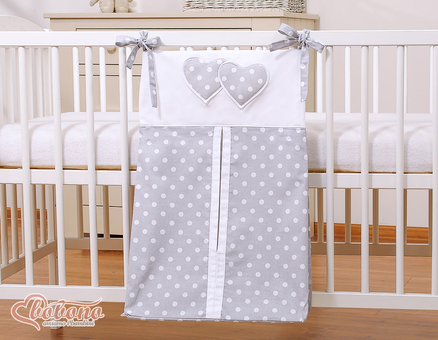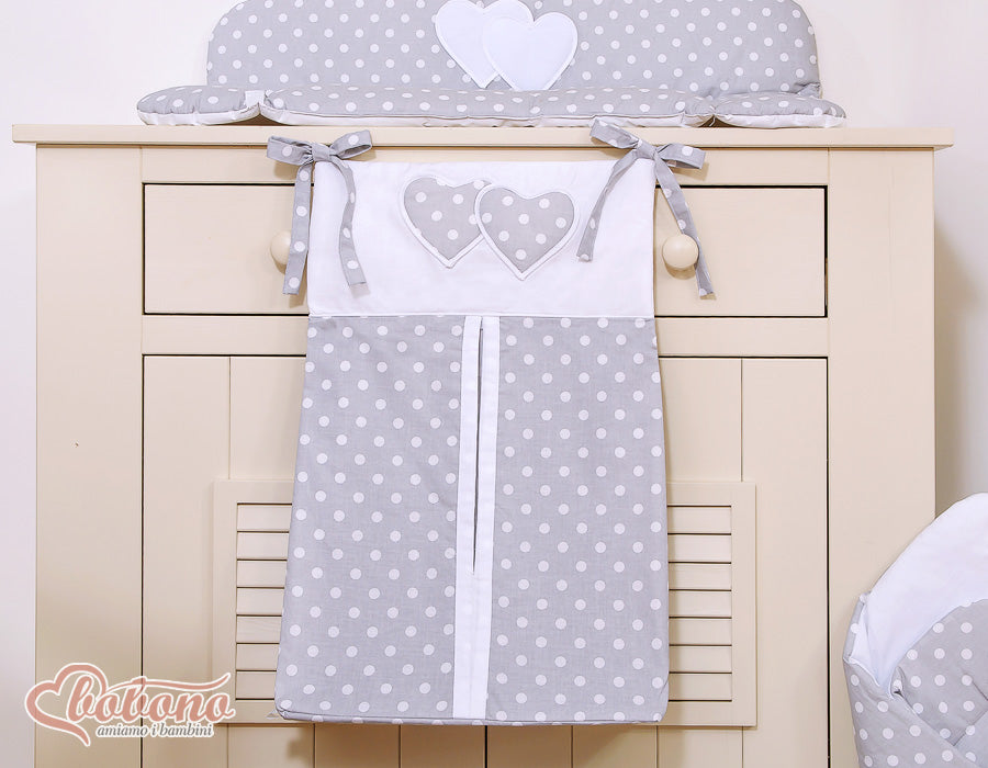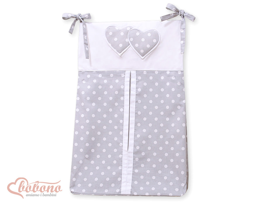 Blöjväska - Hängande hjärtan vit med grå prickar