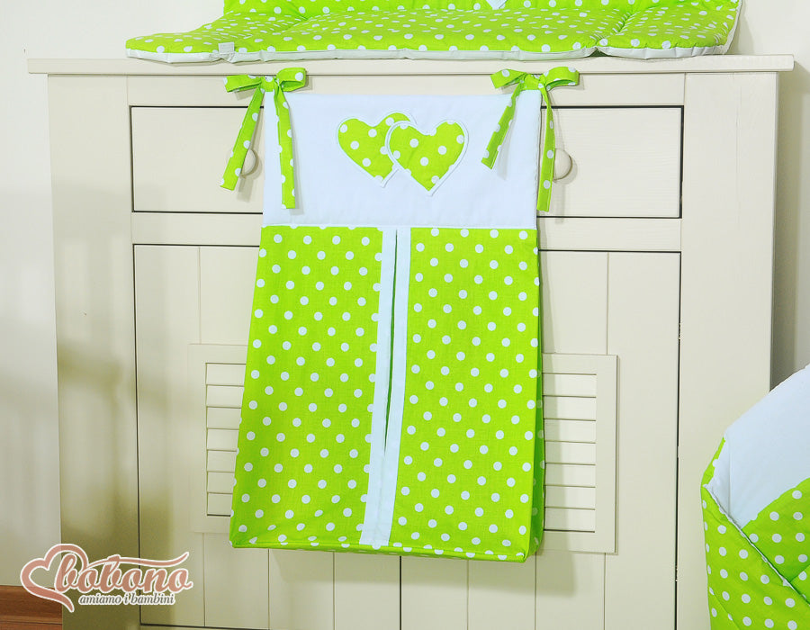Blöjväska - Hängande hjärtan vita prickar på grönt