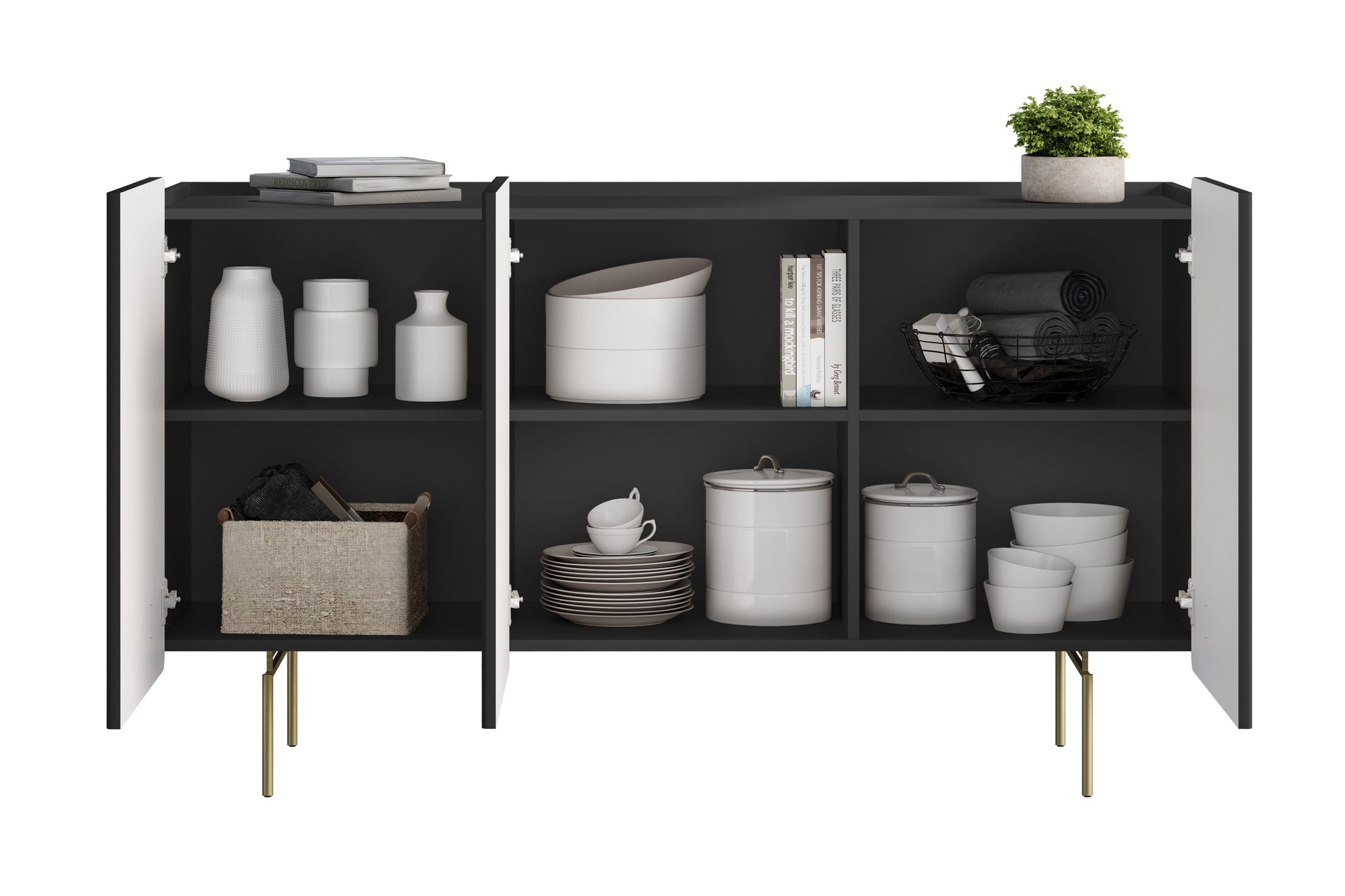 Malmi Ladekast 150 cm – Mat Zwart met Gouden Poten