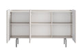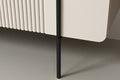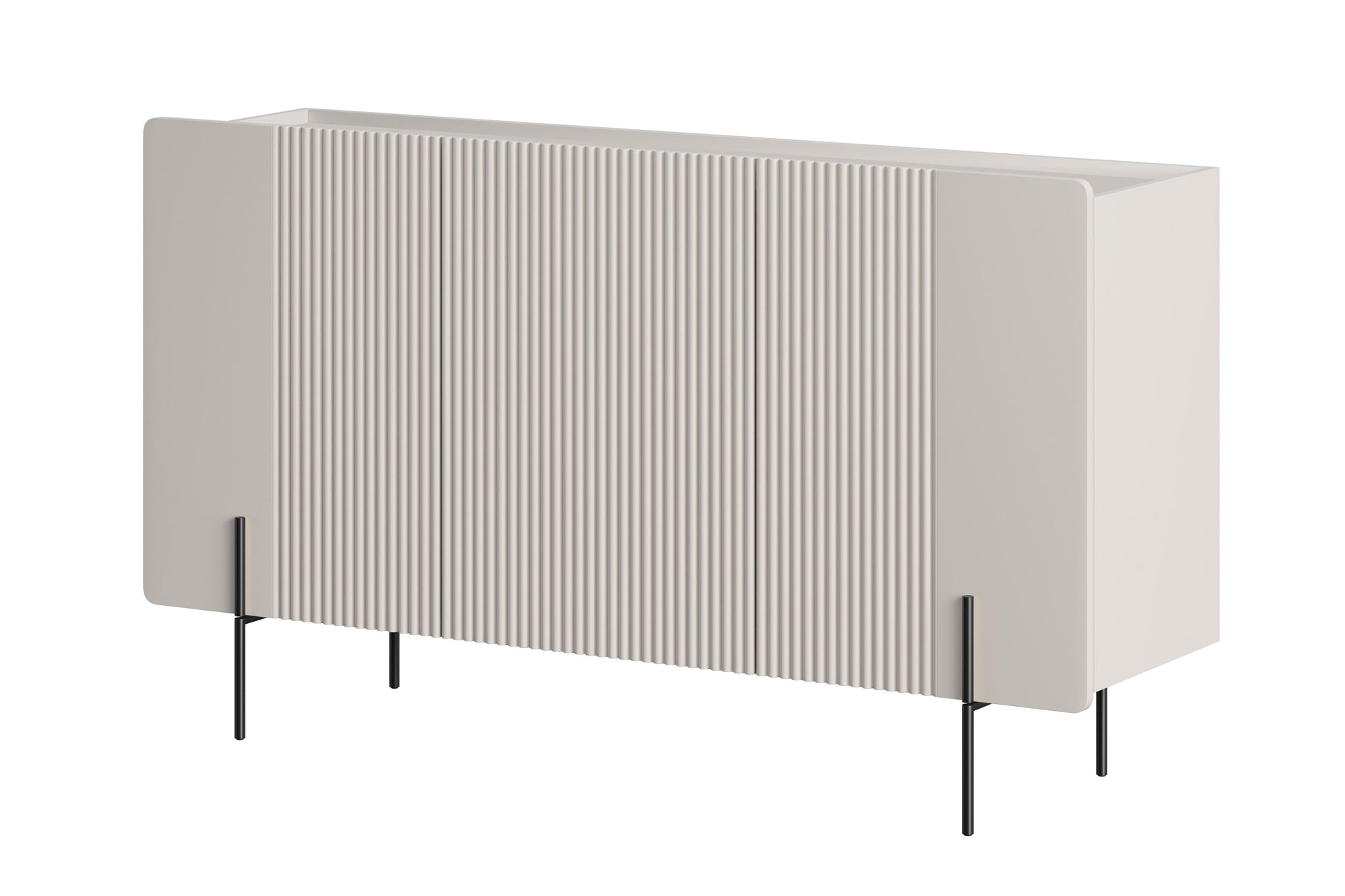 Ontdek de Malmi ladekast van 150 cm in elegante kasjmierkleur met zwarte poten, dé ultieme oplossing voor stijlvolle én functionele opbergruimte. Dit meubel combineert een moderne, matte kasjmierafwerking met opvallende, zwart gepoedercoate metalen poten voor een uniek eigentijds karakter. Het ontwerp met afgeronde, gegroefde fronten, robuuste materialen en subtiele uitstraling maakt deze ladekast geschikt voor de woonkamer, slaapkamer of kantoor. De stevige kast biedt volop opbergruimte dankzij drie royale kasten met verstelbare planken, terwijl het stille sluitsysteem en het handgreeploze design zorgen voor een luxe gebruikservaring.