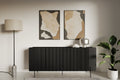 Ontdek de Malmi ladekast van 200 cm in matzwart met zwarte poten: een modern designmeubel dat niet alleen je opbergruimte maximaliseert, maar ook een stijlvolle blikvanger in je interieur vormt. De ladekast kenmerkt zich door gegroefde MDF-fronten, afgeronde randen en een diepe zwarte kleur die perfect aansluit bij de nieuwste woontrends. Het meubel is voorzien van een mat afgewerkte look en rust op slanke, metalen poten met vilten kussentjes voor extra bescherming van je vloer. Dankzij de handgreeploze deuren past deze kast naadloos in elke moderne woonstijl.