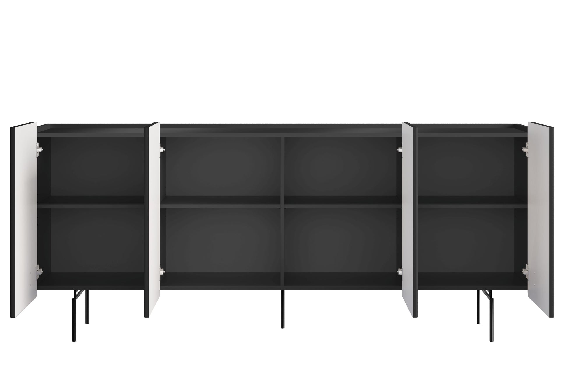 Malmi ladekast 200 cm - modern mat zwart met zwarte metalen poten | Kleur: Mat zwart