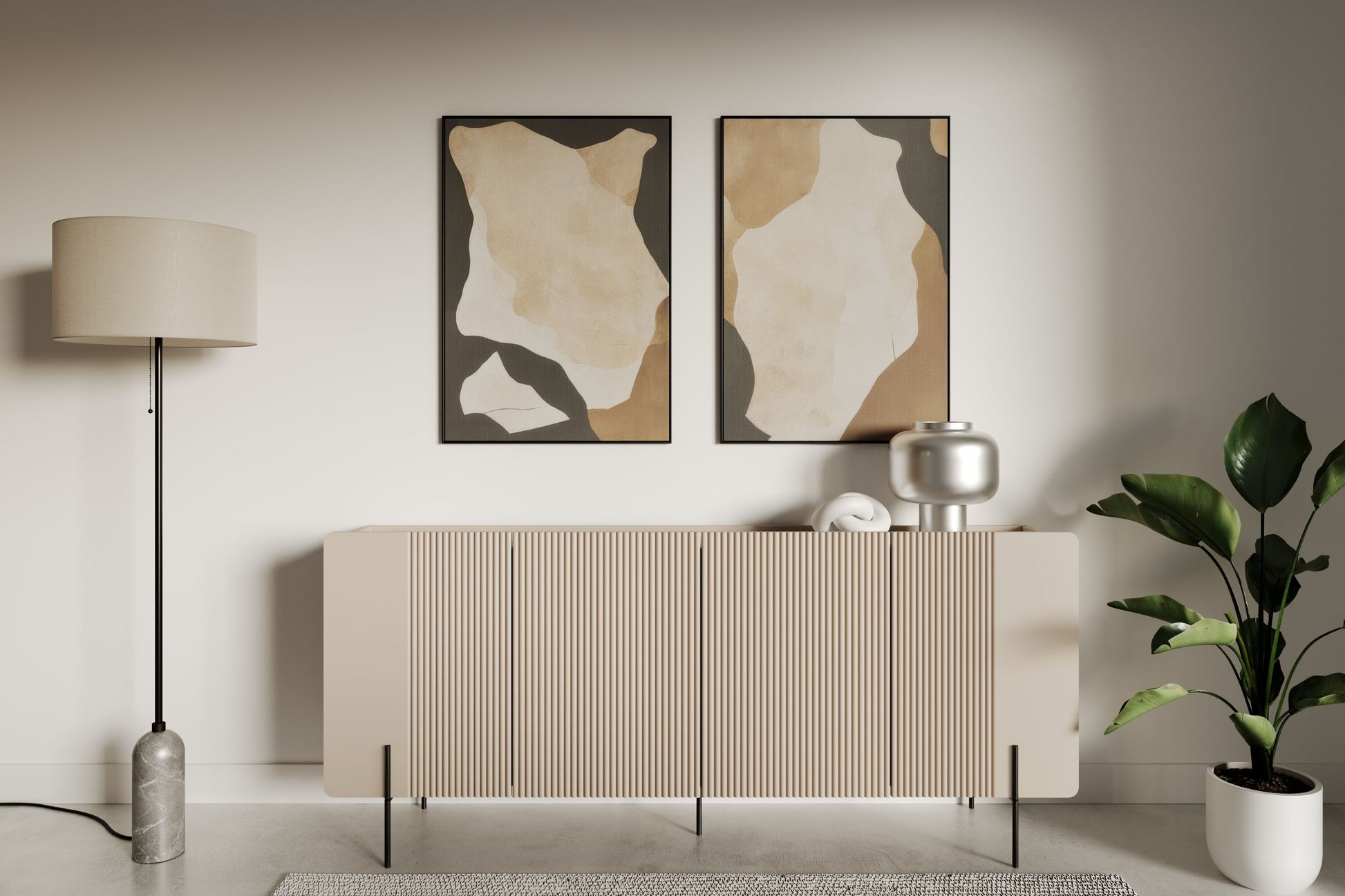 - Details: Vier ruime opbergvakken met verstelbare planken, greeploos en stil sluitmechanisme, afgeronde MDF-fronten met groeven, gepoedercoat metalen onderstel
