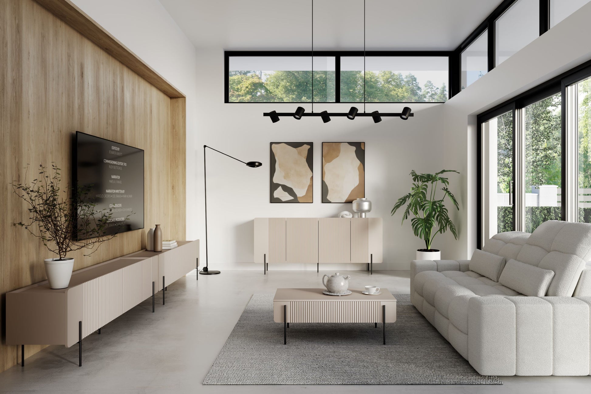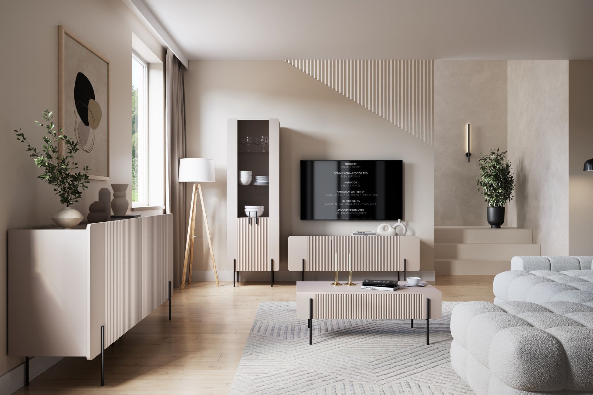 De Malmi ladekast van 200 cm in kasjmier met zwarte poten is dé keuze voor liefhebbers van modern interieur. Het ontwerp valt op door zijn matte kasjmiertint, gegroefde MDF-fronten en afgeronde, elegante randen. Het meubel is voorzien van een greeploos openingssysteem, stille sluiting en stabiele metalen poten met vilten pads die uw vloer beschermen. Vier ruime kasten met verstelbare planken bieden maximale opbergruimte, terwijl ABS-randen het geheel beschermen tegen dagelijkse slijtage.