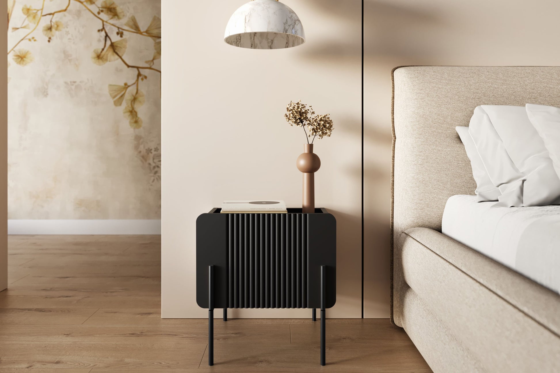 Malmi Nachtkastje met Lade - Matzwart, Metalen Poten | Kleur: Matzwart | Maat: 45x47x42 cm