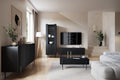Geniet dagelijks van optimaal gebruiksgemak door het comfortabele, stille sluitsysteem in scharnieren en lade. Het Malmi TV-meubel biedt twee ruime opbergkasten, een handige lade en een open nis, ideaal voor elektronica en accessoires. Door het geïntegreerde gat voor kabels ziet uw woonkamer er altijd netjes uit. Het meubel past perfect bij lichte muren, betonnen elementen of houten accenten en benadrukt een moderne, minimalistische loftstijl. Praktische vilten pads onder de poten beschermen uw vloer effectief tegen krassen. Maak uw interieur compleet met deze smaakvolle en functionele aanwinst!
