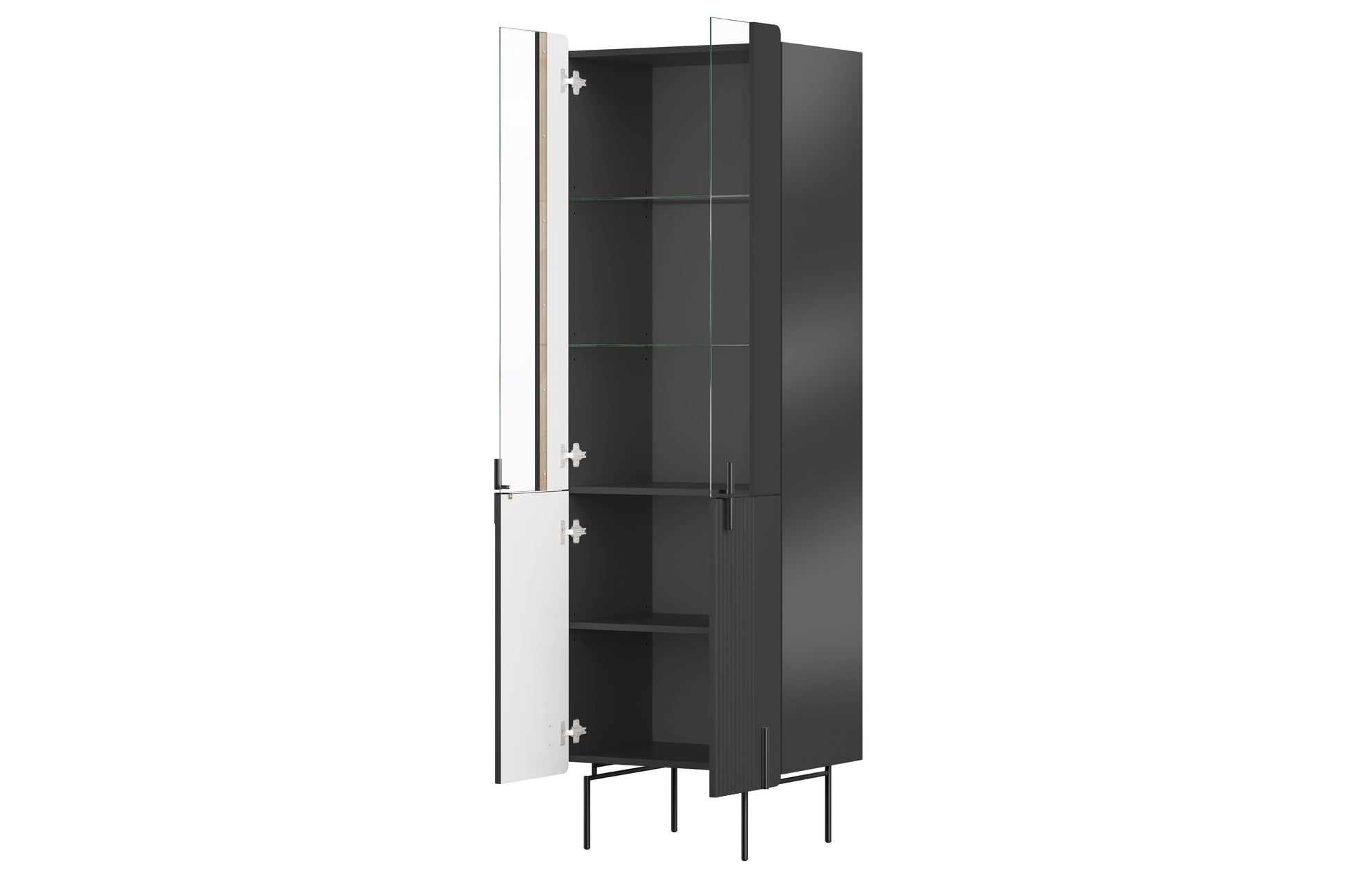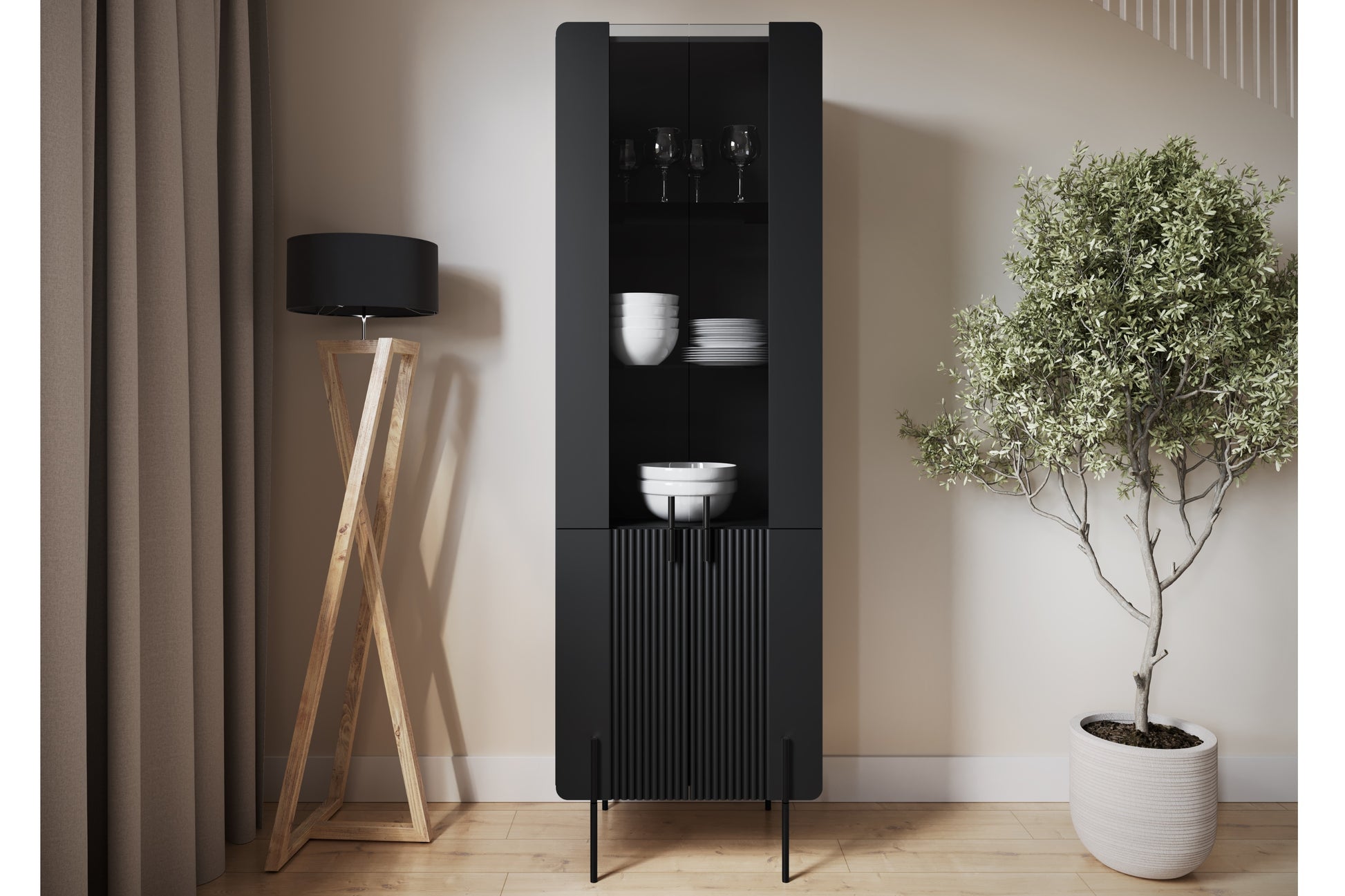 Malmi vitrinekast 60 cm - Mat zwart met metalen poten | Kleur: Mat zwart | Maat: 60x190x42 cm