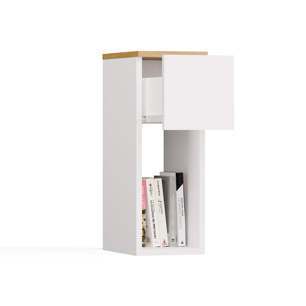 Modern bedkastje GALAX 20 1S met lade en plank | Wit & Ambachtelijk Eiken | 20x30x55 cm