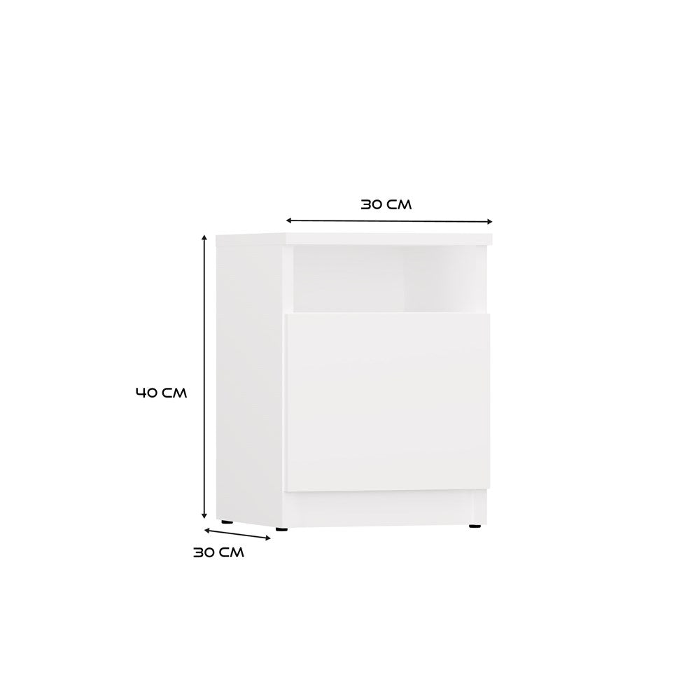 Modern Galax 30 1D nachtkastje met deur – Greeploos, TIP-ON systeem | Kleur: Wit | Maat: 30x30x40 cm