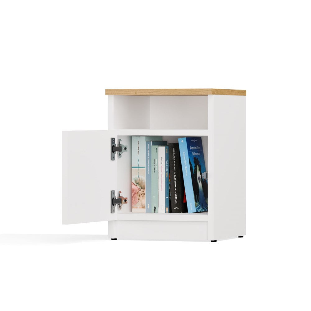 Modern nachtkastje GALAX 30 1D - Met deuren, TIP-ON systeem | Kleur: Wit/ambachtelijk eiken