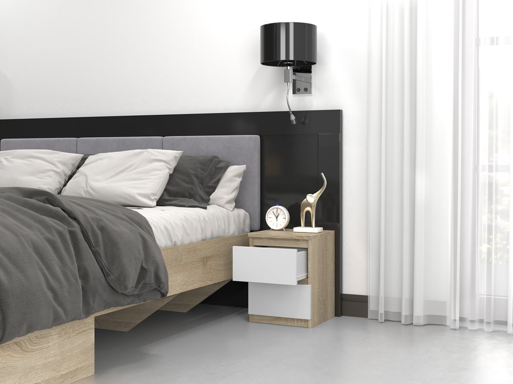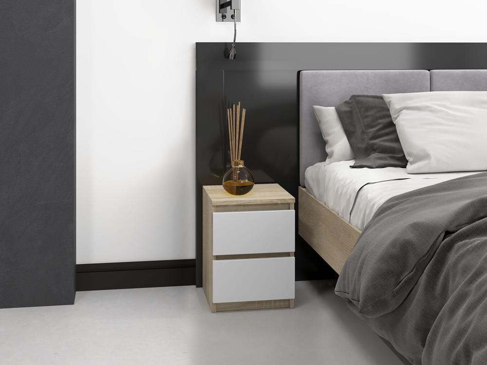 Modern Nachtkastje MALWA M2 met 2 Lades in Sonoma/Wit