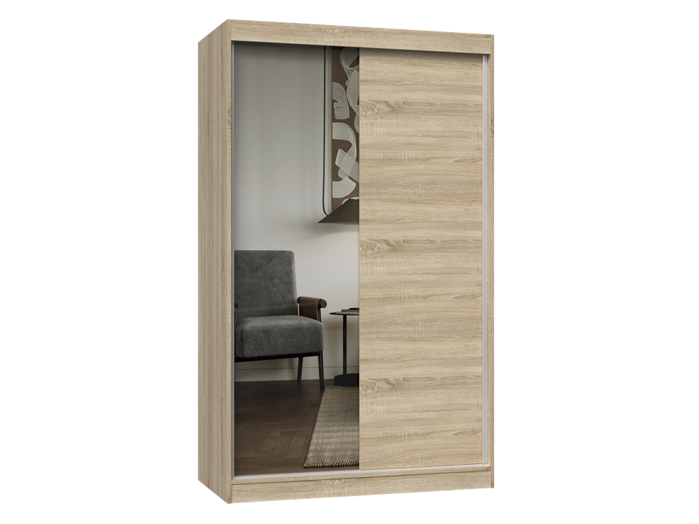 Moderne garderobekast met schuifdeuren en spiegel - IGA | Kleur: Sonoma eik | 120x61x200 cm