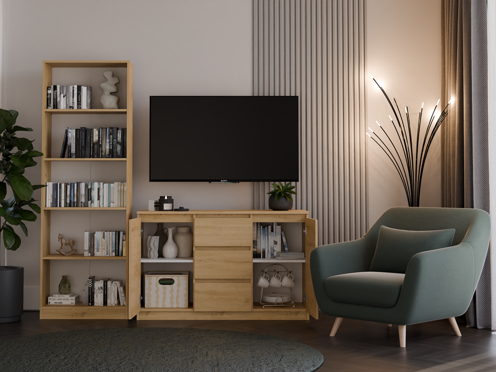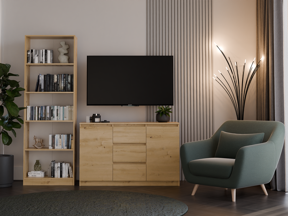Moderne ladekast 2 deuren 3 laden - Functioneel design | Artisan eiken | 120x40x75 cm