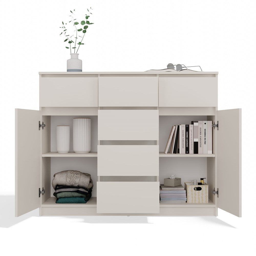 Moderne ladekast 2D6S met 2 deuren en 6 lades | Kleur: Cashmere | Maat: 120x40x96,5 cm