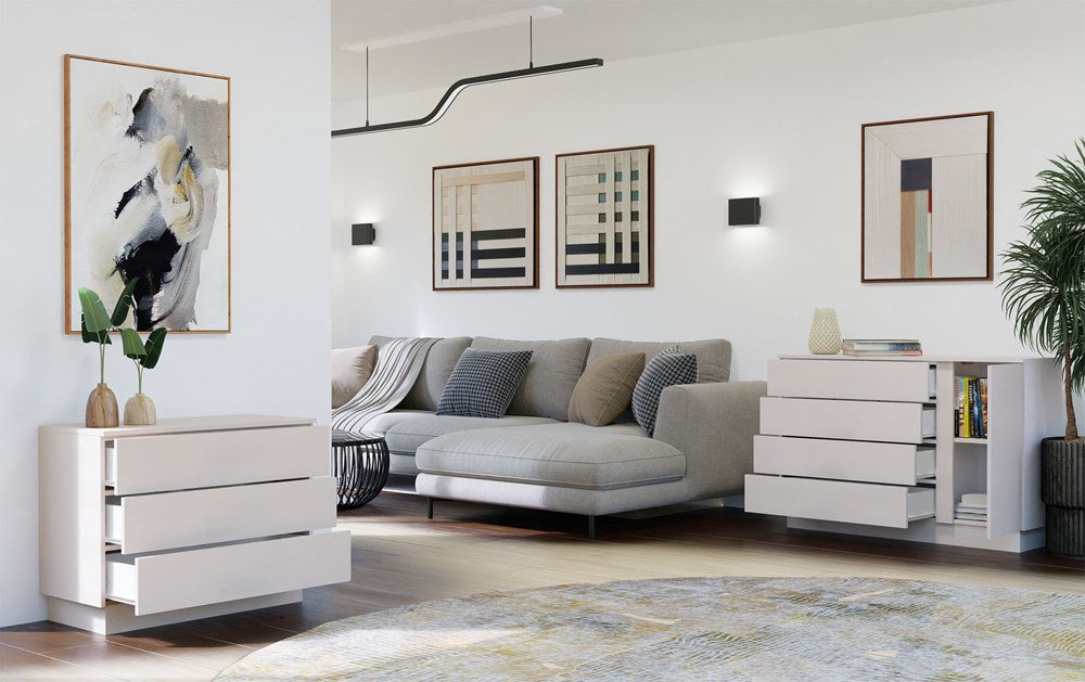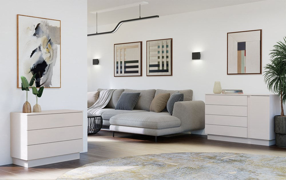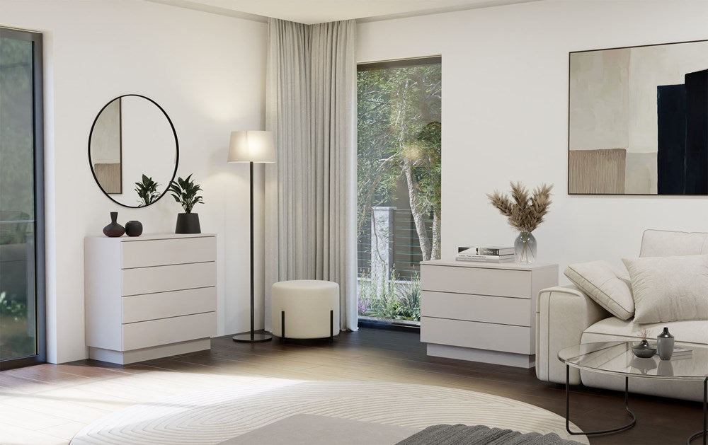 Moderne ladekast AMBER 3 lades - Compacte opbergkast met TIP ON systeem | Kleur: Kasjmier Beige