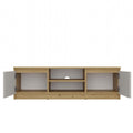 De MALWA TV-kast onderscheidt zich door praktisch gebruiksgemak en veelzijdigheid. De handige open plank beschikt over een opening voor kabelbeheer, wat zorgt voor een nette en georganiseerde look. Ruime zijkasten zonder interne planken geven flexibele opbergruimte voor boeken, consoles of audioapparatuur. Dankzij het compacte design is deze kast ideaal voor zowel grote als kleinere woonkamers. De montage is eenvoudig met de bijgeleverde instructies en accessoires, en het meubel biedt jarenlang gebruiksplezier door de stevige gelamineerde spaanplaat en metalen scharnieren.