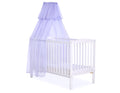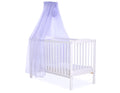 Elegant och praktiskt myggnät, universellt lämpligt för sängar med måtten 140x70 cm och 120x60 cm. Det passar alla spjälsängar och spjälsängar och ger en dekorativ touch till alla barnrum.