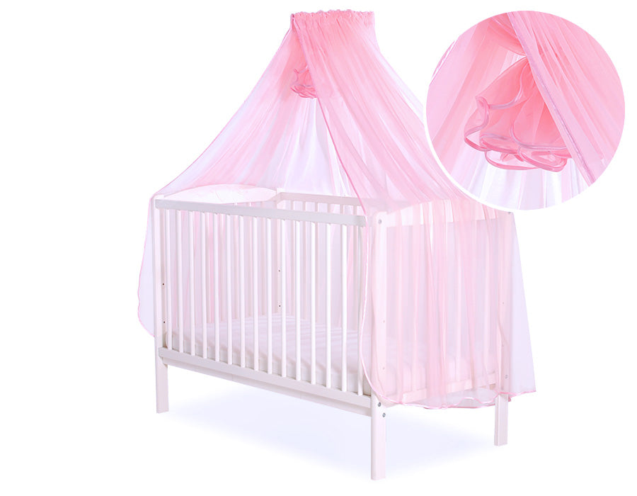 Detta universella myggnät är lämpligt för sängar som mäter 140x70 cm och 120x60 cm och passar perfekt till alla spjälsängar. Myggnätet har ett dekorativt utseende och erbjuder fullständigt skydd mot insekter.