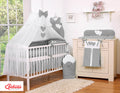 Snyggt och praktiskt myggnät, universellt lämpligt för sängar med måtten 140x70 cm och 120x60 cm. Perfekt för alla spjälsängar och spjälsängar, och ger en dekorativ touch till alla barnrum.