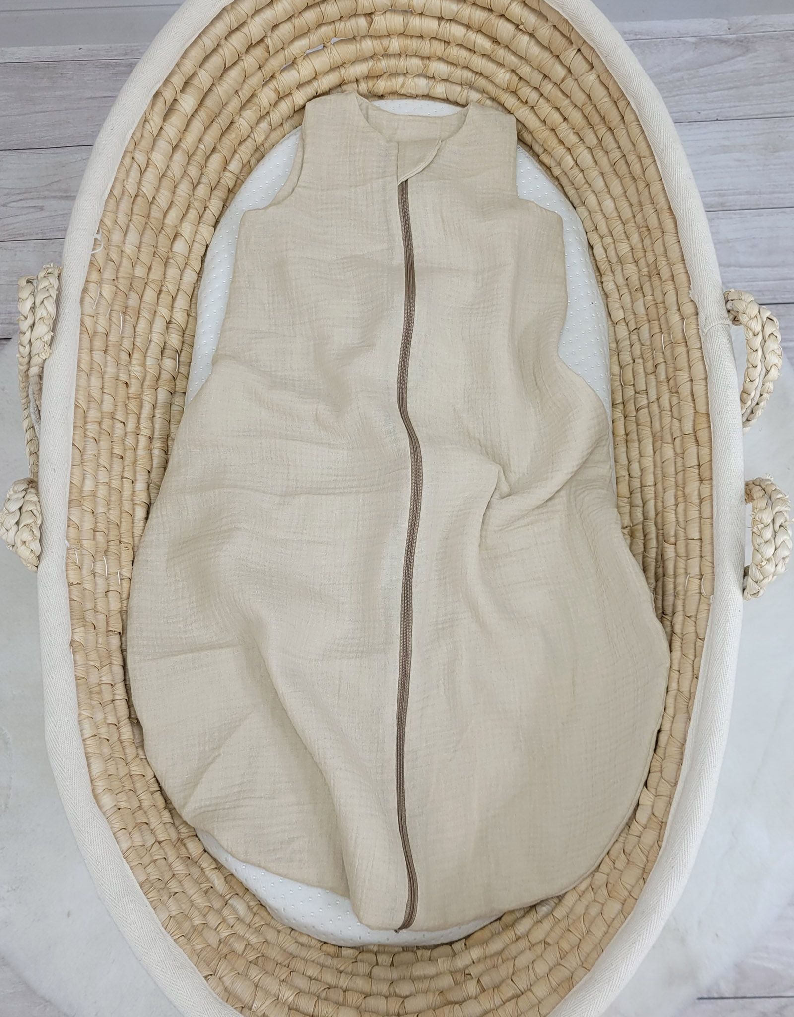 Muslin babysovpåse - sommarsovpåse - andningsbar och mjuk bomull, 6-12 månader, krämfärgad, TOG 1.0