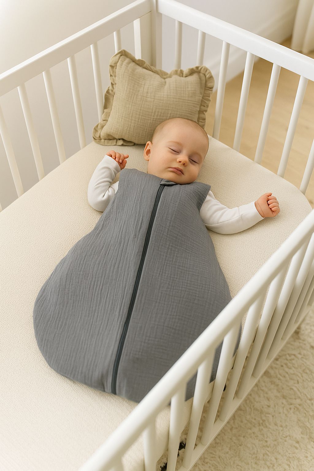 Muslin babysovpåse - sommarsovpåse - andningsbar bomull, lätt att byta, 6-12 månader