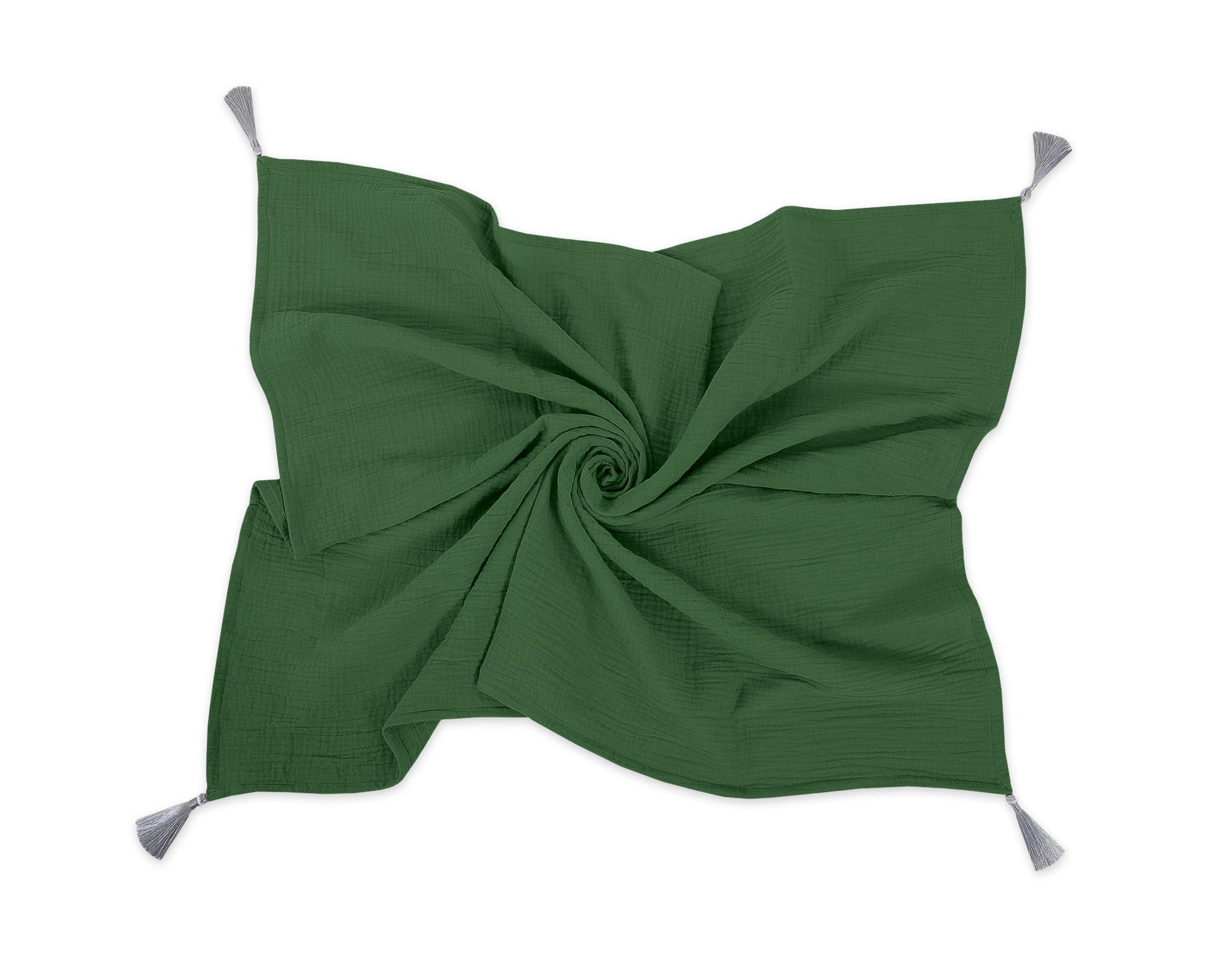 Muslinfilt för barn - babyfilt - andningsbar och mjuk 100% bomull - skogsgrön med tofsar