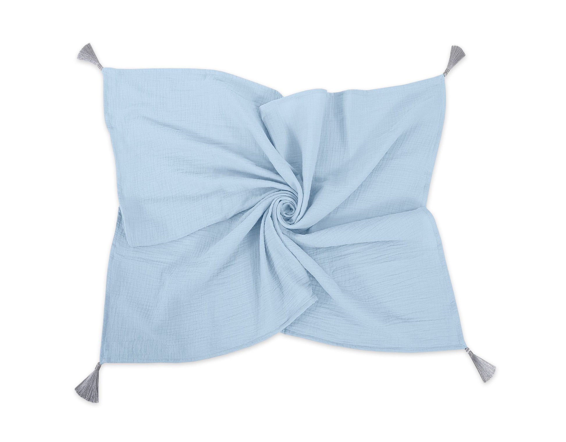Blå muslinfilt med tofsar - Dubbel gasväv