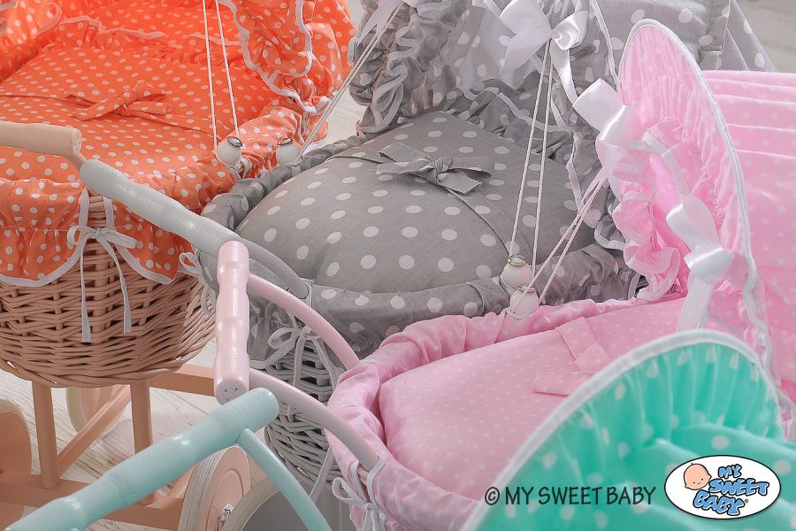 Naturlig rotting dockvagn med grå klädsel och stoppning