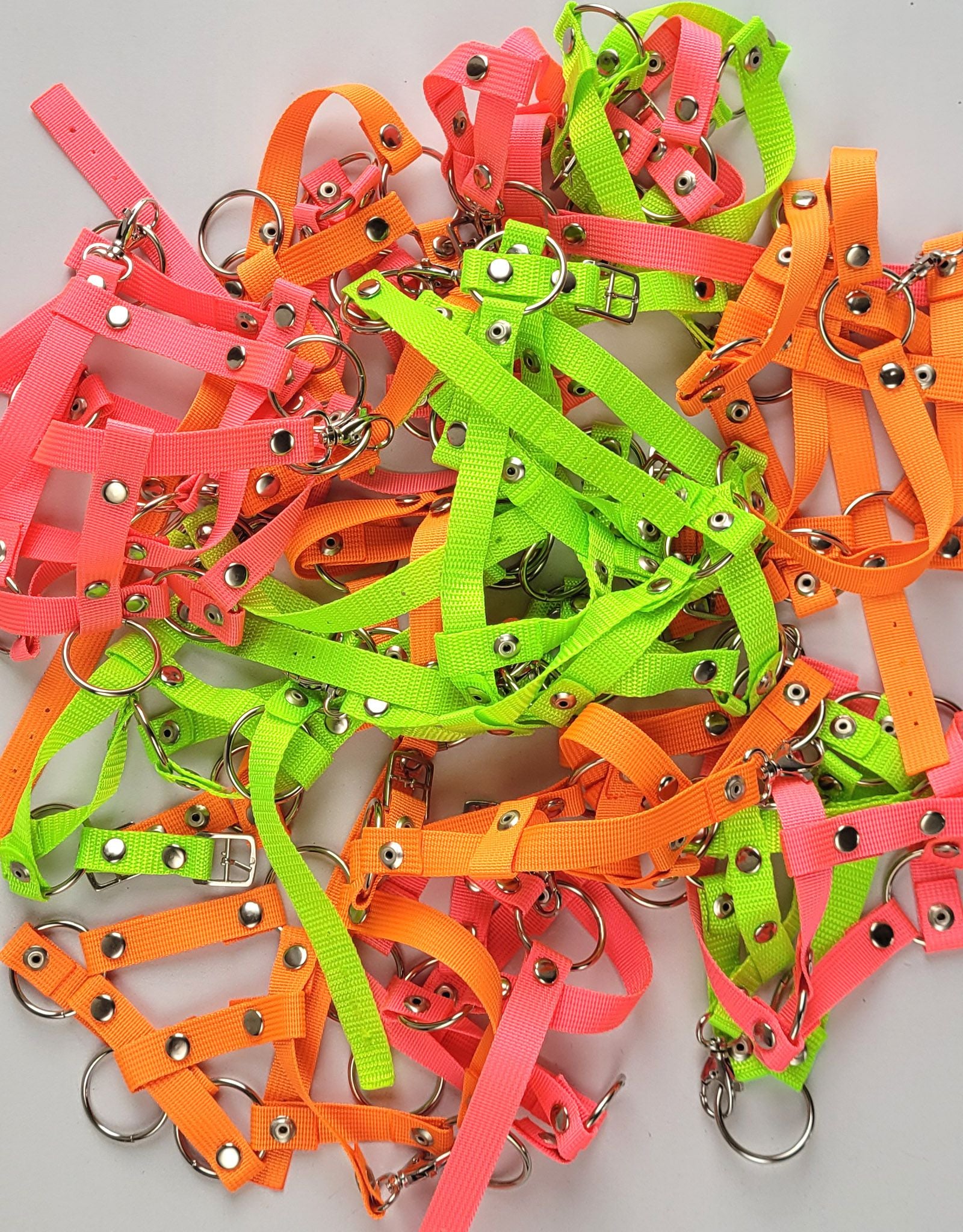 En praktisk och slitstark tygel speciellt utformad för käpphästar. Handgjord av högkvalitativt, 1,5 cm brett neonvävband, ger denna tygel extra styrka och stil.