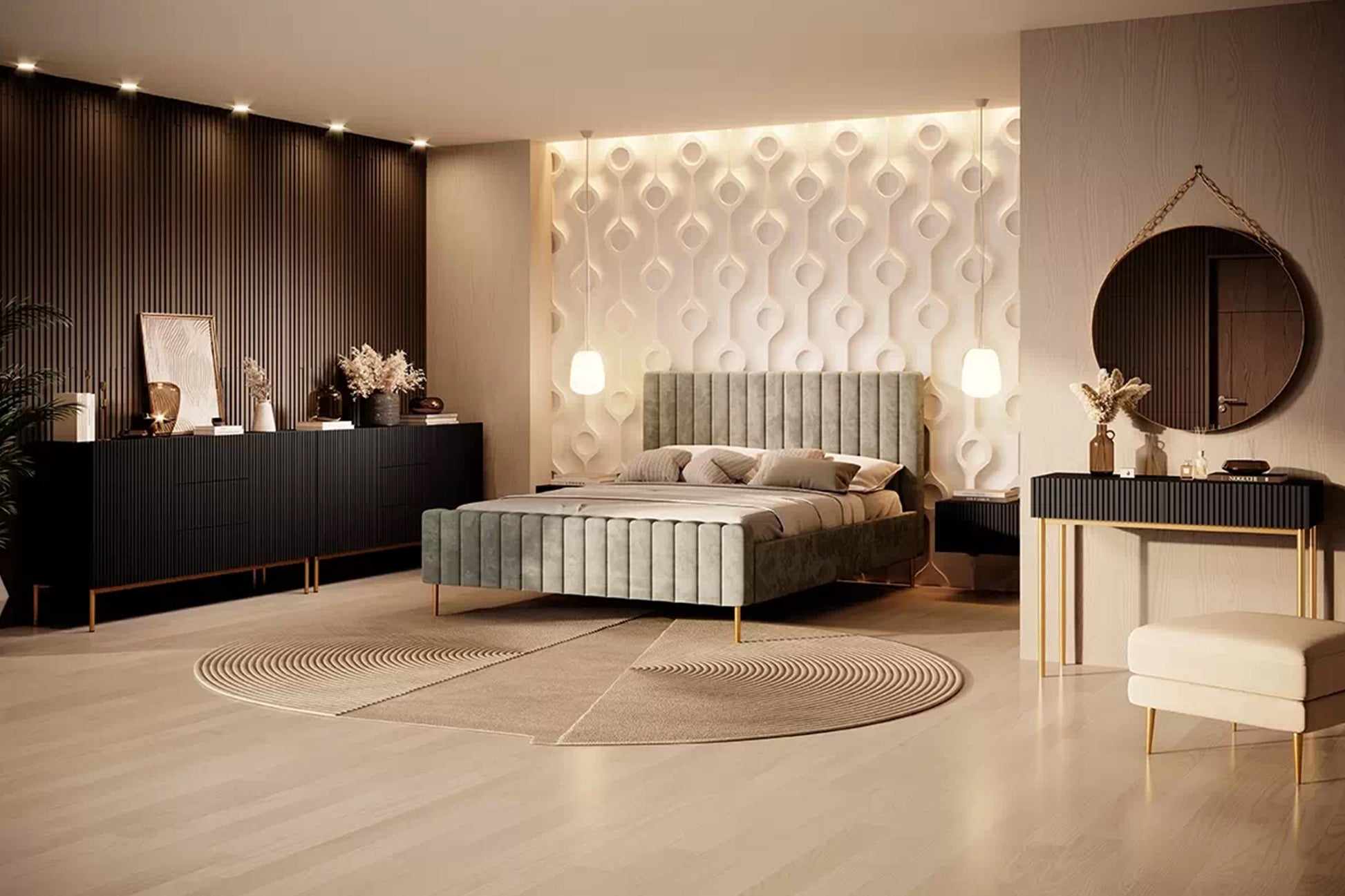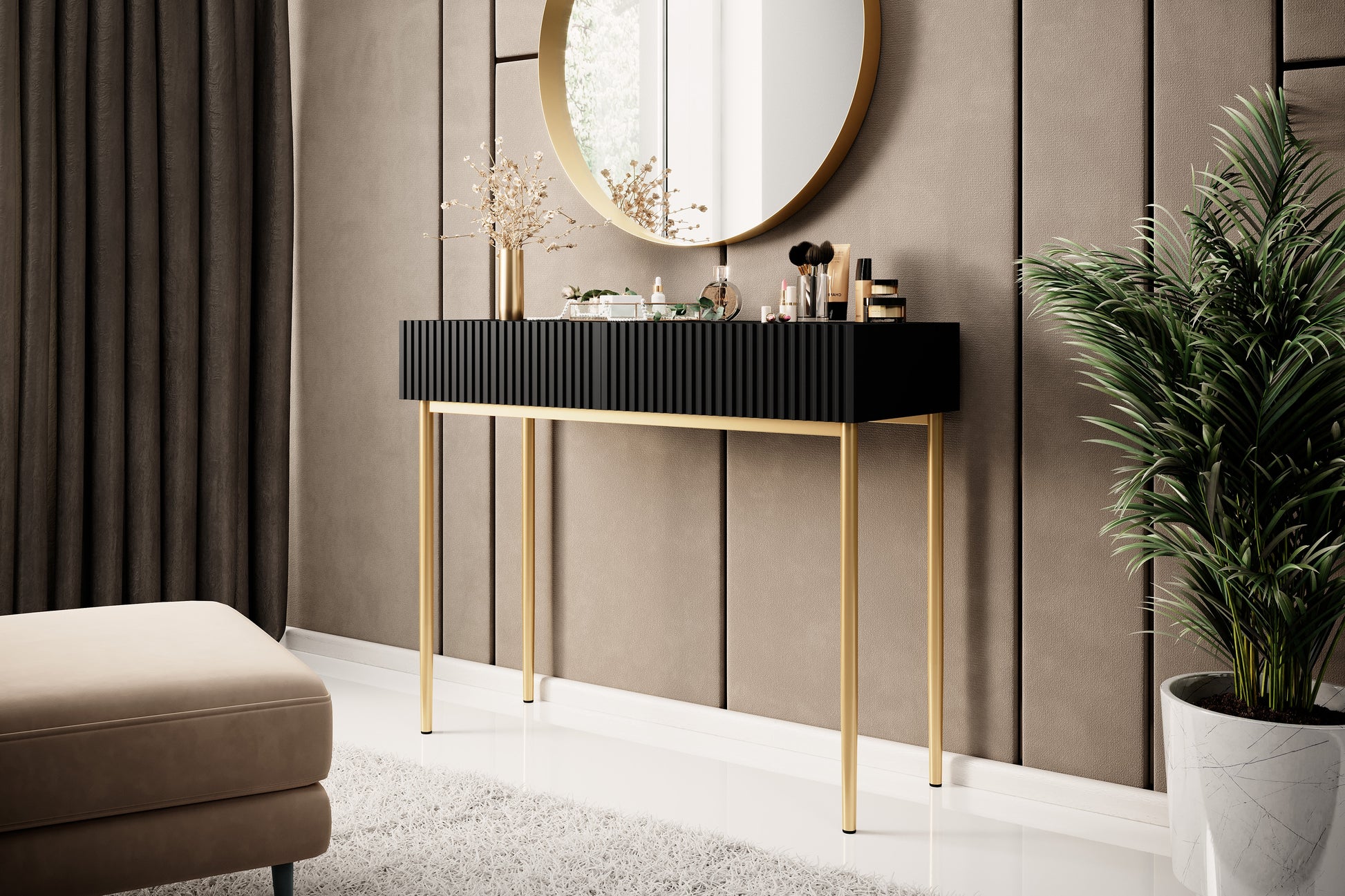 Nicole console met lades – Mat zwart/Gouden poten | Maat: 100x82x41 cm