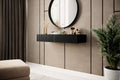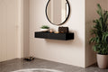 Dankzij de hoogwaardige materialen is het bureau duurzaam én bestand tegen alledaagse beschadigingen. Het lade-openingssysteem zorgt voor eenvoudige bereikbaarheid en gebruiksgemak, ideaal voor het opbergen van kantoorartikelen of make-up. De matzwarte kleur contrasteert perfect met lichte muren en brengt direct een stijlvol accent in de kamer. Eenvoudige wandmontage maakt het meubel geschikt voor compacte ruimtes en zorgt ervoor dat vloeroppervlak vrij blijft.