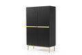 Nicole hoge ladekast 100 cm met lades en kasten voor opbergruimte | Mat zwart | Gouden poten