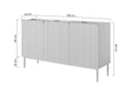 Geef uw interieur een luxe touch met de Nicole ladekast 150 cm in mat zwart, voorzien van stijlvolle gouden poten. Dit meubel combineert modern design met een opvallend gegroefd front van 18 mm MDF, dat zorgt voor extra diepte en karakter. Het handgreeploze ontwerp en de minimalistische uitstraling volgen de laatste interieurtrends. Dankzij drie deuren met een geruisloos sluitsysteem, verstelbare planken op drie niveaus, en stevige metalen poten, brengt deze ladekast verfijning en gebruiksgemak in elke kamer. Perfect voor woon-, slaap- of eetkamer met een glamoureuze of moderne inrichting.