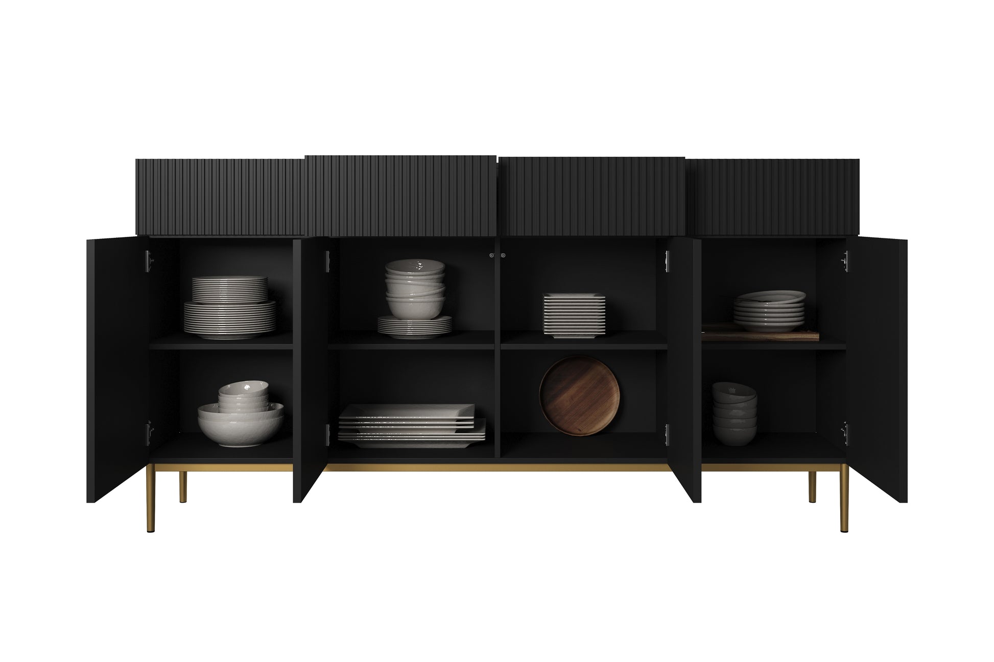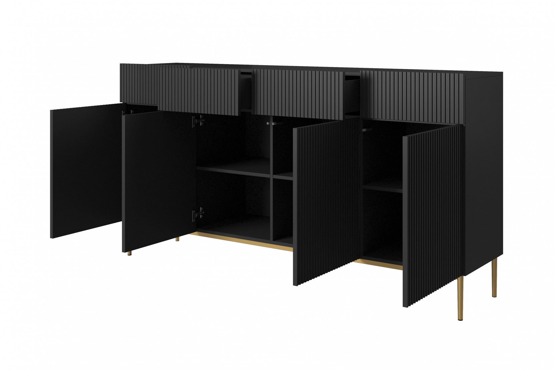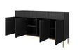 Nicole ladekast 200 cm - Mat zwart met gouden poten | Kleur: Mat zwart & goud | Maat: 200x105x45 cm