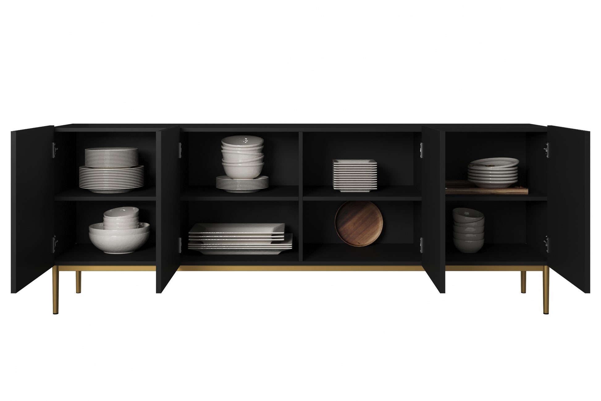 Nicole ladekast 200 cm - Mat zwart met gouden poten | Kleur: Mat zwart | Maat: 200x85x45 cm