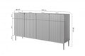 - Materiaal: 16 mm gelamineerd karton, 18 mm MDF front, metalen poten