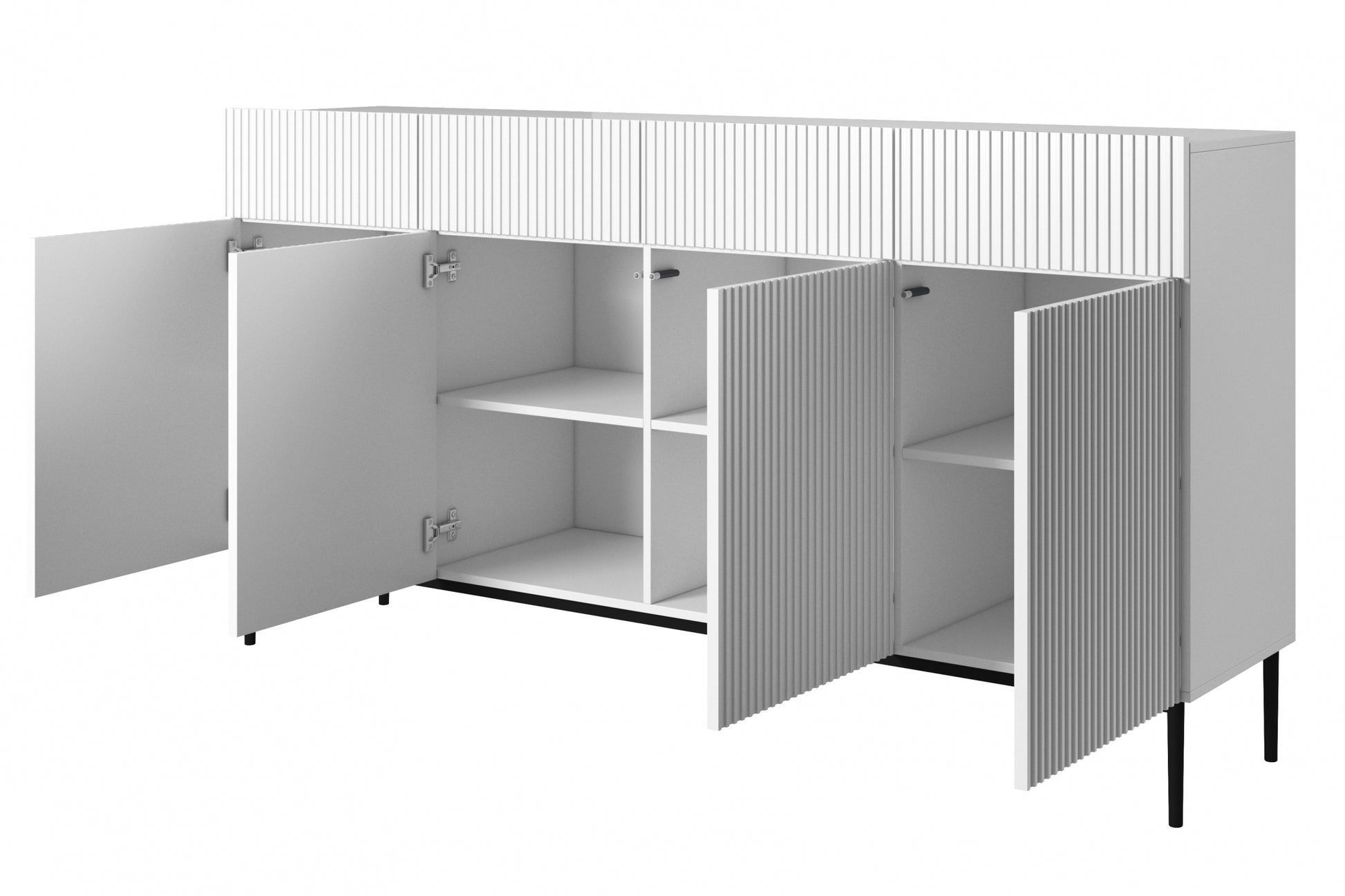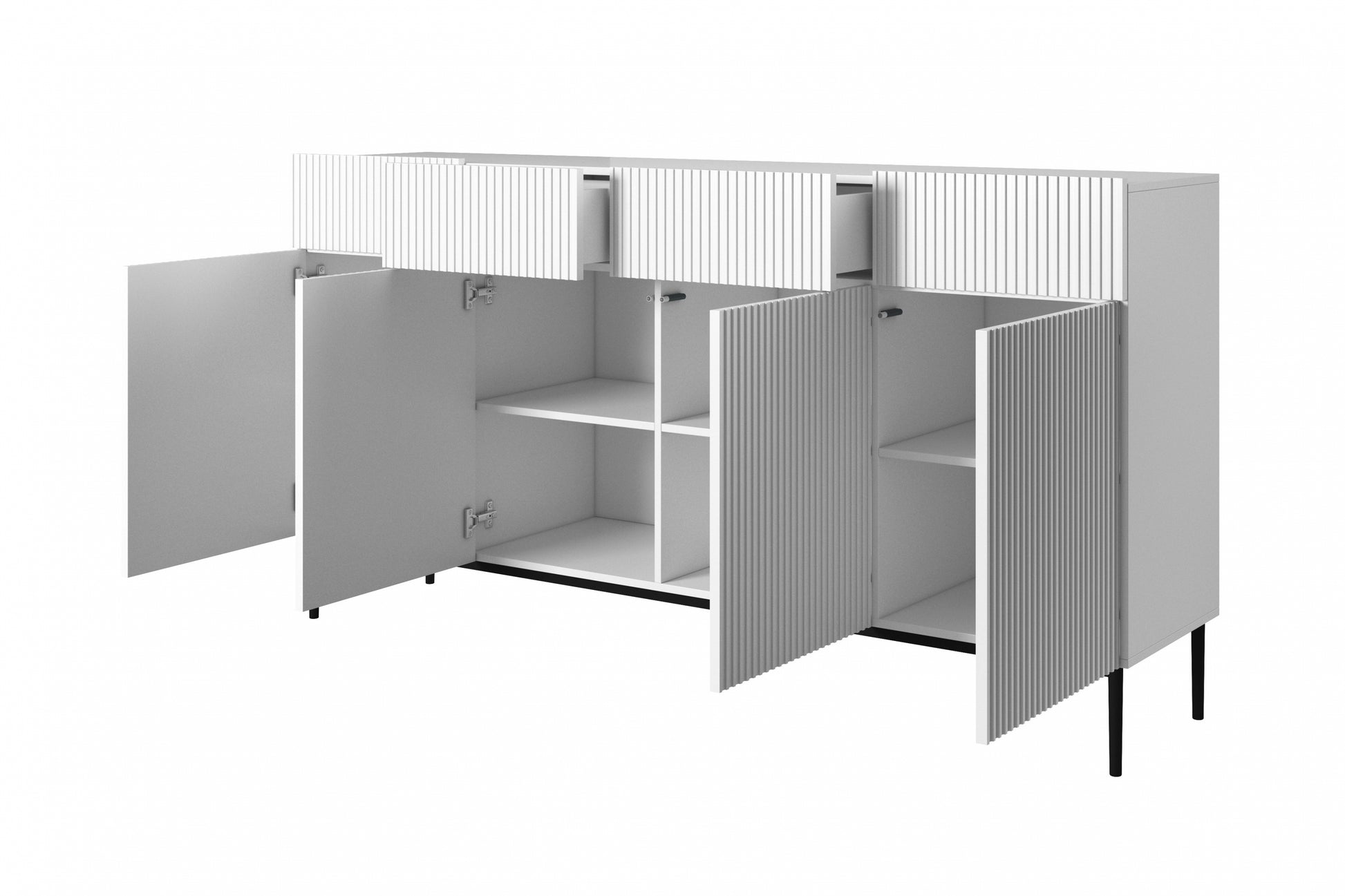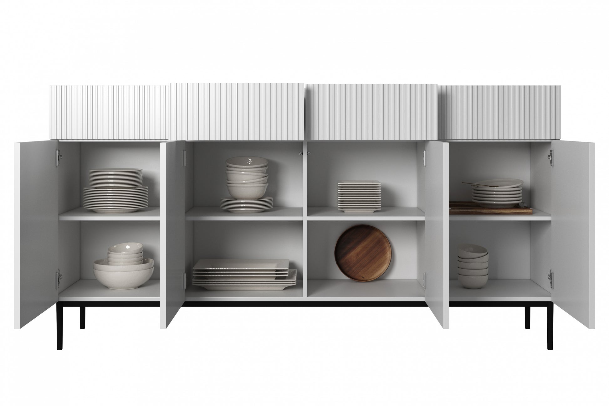 Nicole ladekast 200 cm – Scandinavisch design, 4 laden, mat wit | Zwart poten | 200x105x45 cm