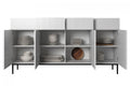 Deze ladekast is ontworpen voor ultiem gebruiksgemak; de ‘push to open’ technologie en het geruisloos sluiten van de laden maken dagelijks gebruik eenvoudig en aangenaam. Met vier grote laden en verstelbare planken biedt het meubel verrassend veel opbergruimte voor kleding, servies of woonaccessoires. De stevige metalen poten zijn voorzien van rubberen kussentjes, wat zorgt voor stabiliteit en bescherming van uw vloer. Past harmonieus in woon-, slaap- of studeerkamer en laat zich moeiteloos combineren met andere meubels in lichtkleurige tinten.