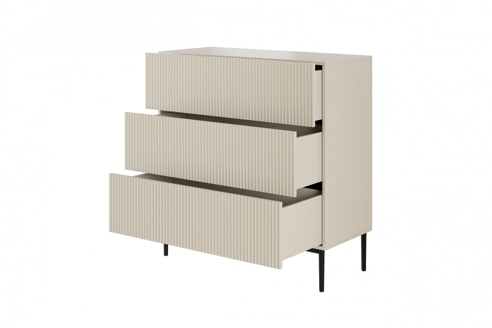 Nicole ladekast 3 lades - Kasjmier geribbeld MDF | Kleur: Kasjmier/zwart | Maat: 100x105x45 cm