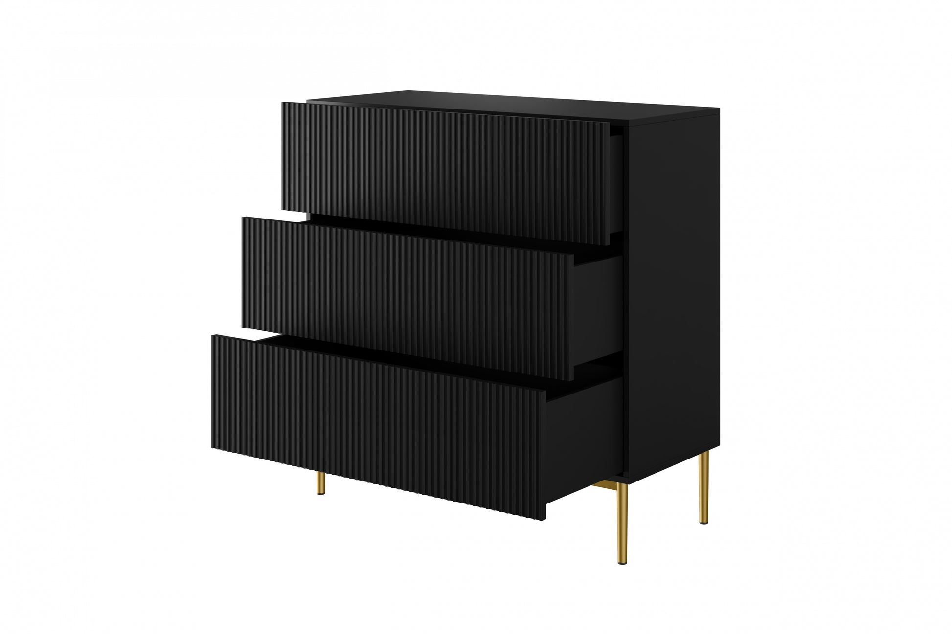 Nicole ladekast 3 lades met soft-close - Mat zwart, gouden poten | 100x105x45 cm