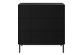 De Nicole ladekast 100 cm combineert een modern design met optimale functionaliteit en is uitgevoerd in stijlvol mat zwart. Met drie ruime lades op een stevige, metalen onderstel verrijkt deze kast elk interieur. De unieke gegroefde MDF voorkant en het push-to-open-systeem voegen niet alleen gebruiksgemak, maar ook een luxe uitstraling toe. De ladekast is vervaardigd uit hoogwaardig gelamineerd karton en MDF, wat zorgt voor duurzaamheid en krasbestendigheid. Met zijn elegante matte afwerking en robuuste bouw is dit meubelstuk de perfecte blikvanger voor iedere woonruimte.