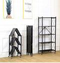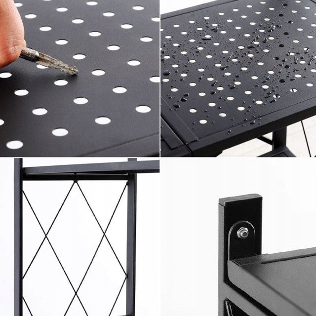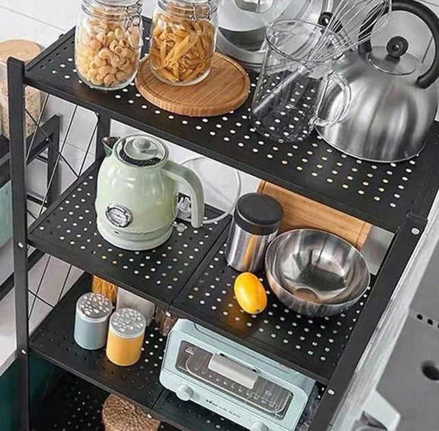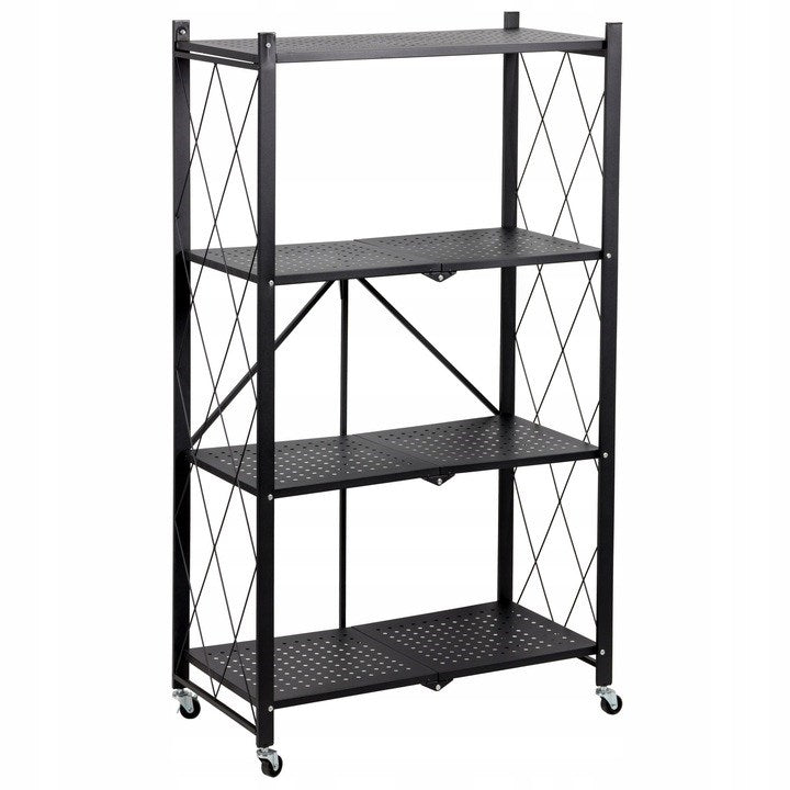 Opvouwbaar keukerek op wielen met 4 planken - LOFT stijl | Kleur: Zwart | Maat: 127x72x34 cm