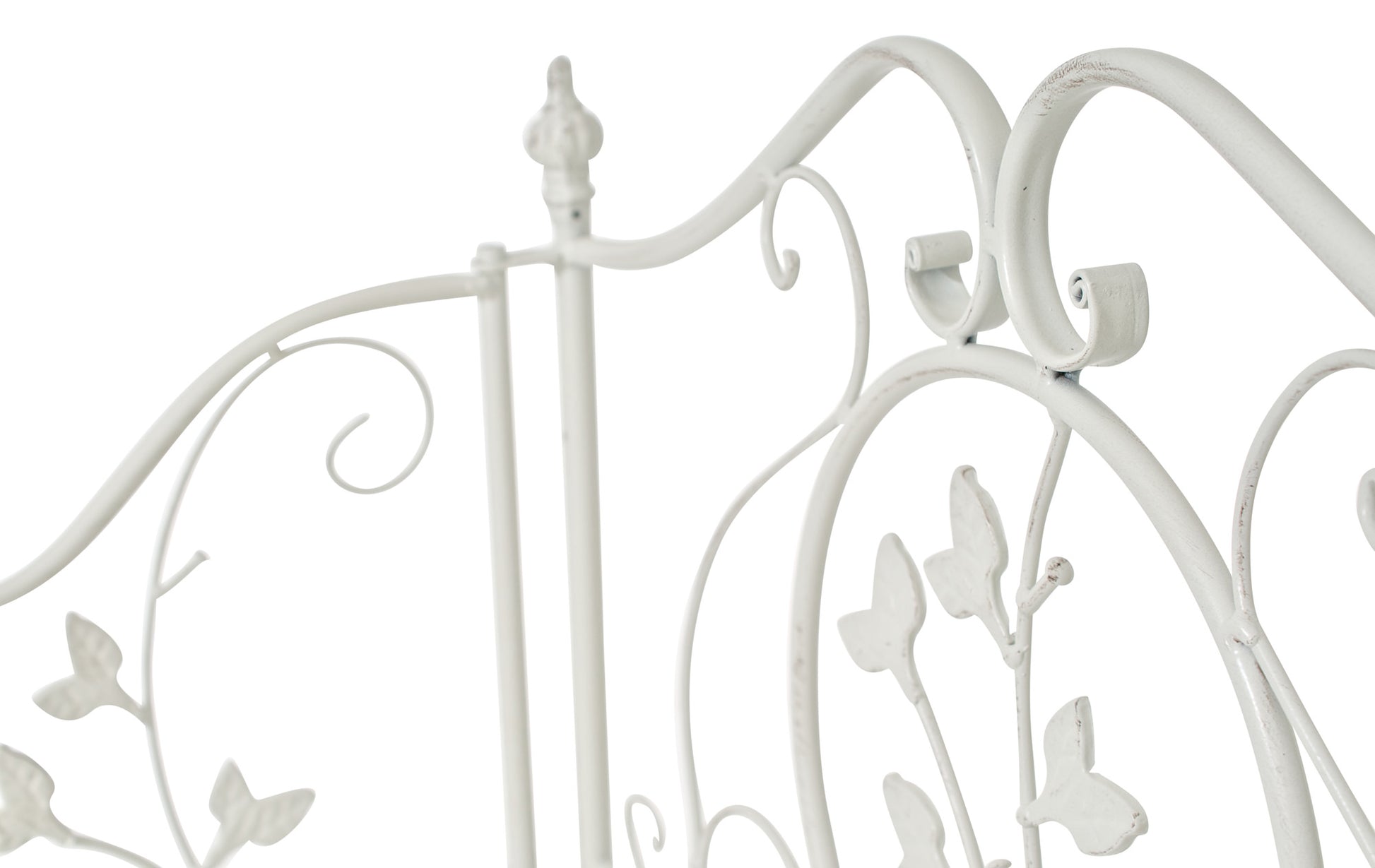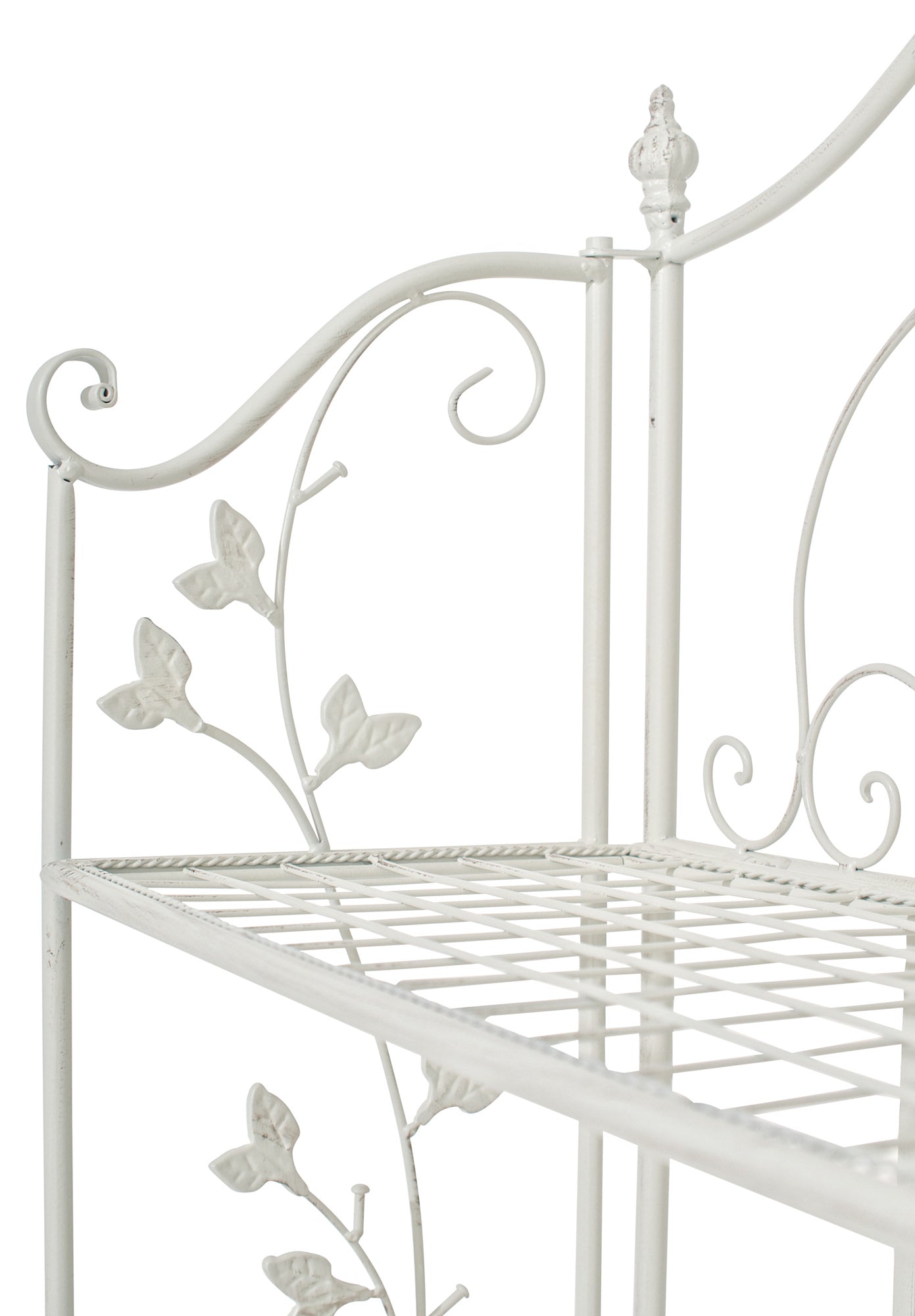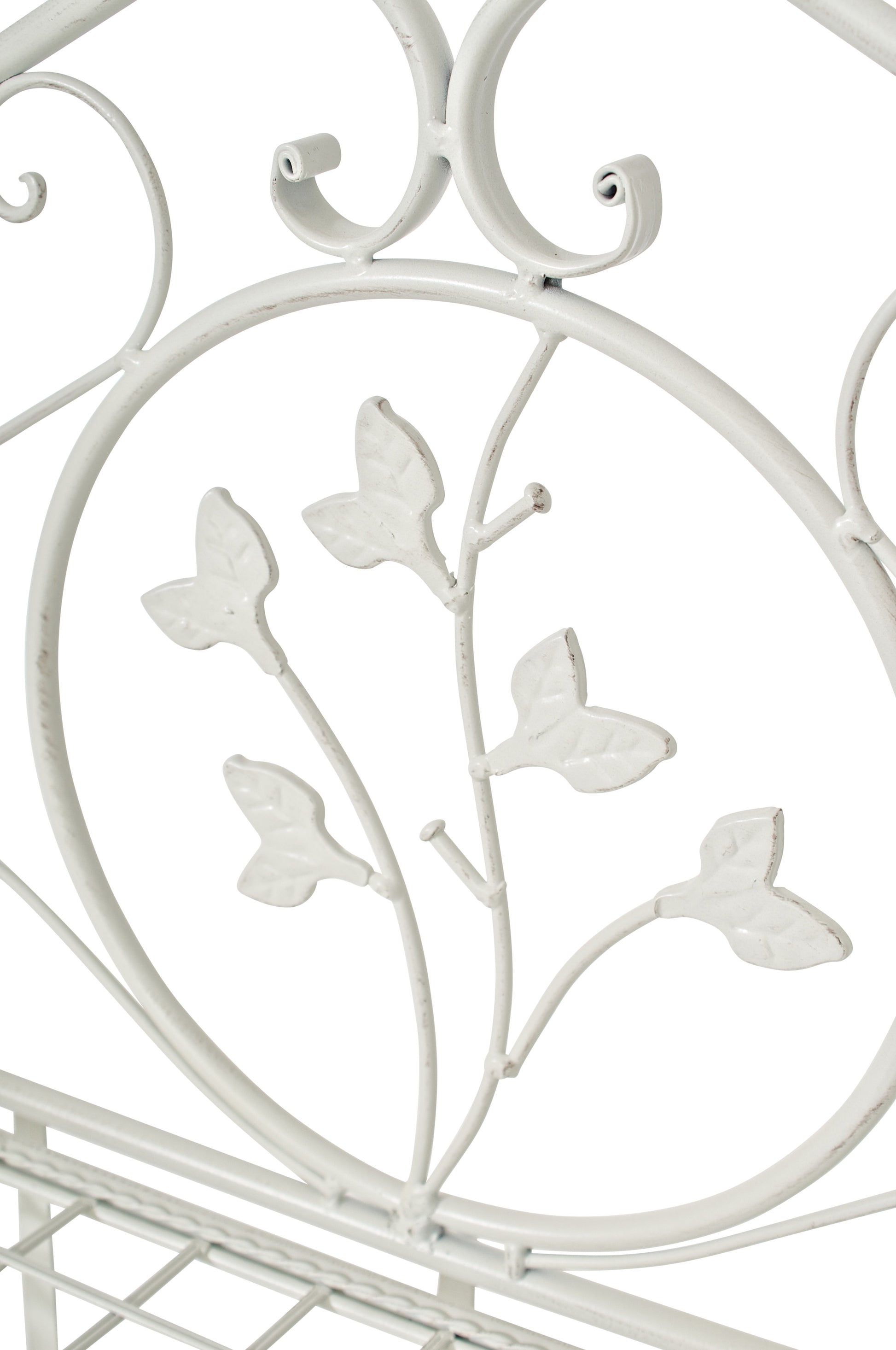 Denna vägghylla ger en romantisk touch till alla rum. Förvaringsstället är utsmyckat med många dekorativa detaljer och är, trots sitt delikata utseende, mycket stabilt och hållbart. Det är tillverkat av högkvalitativa järnrör, som också är pulverlackerade för extra kvalitet. Den hopfällbara hyllan erbjuder flexibilitet: den kan fällas ihop vid behov för enkel förvaring och transport. Produkten levereras i sin originalförpackning och är enkel att montera.